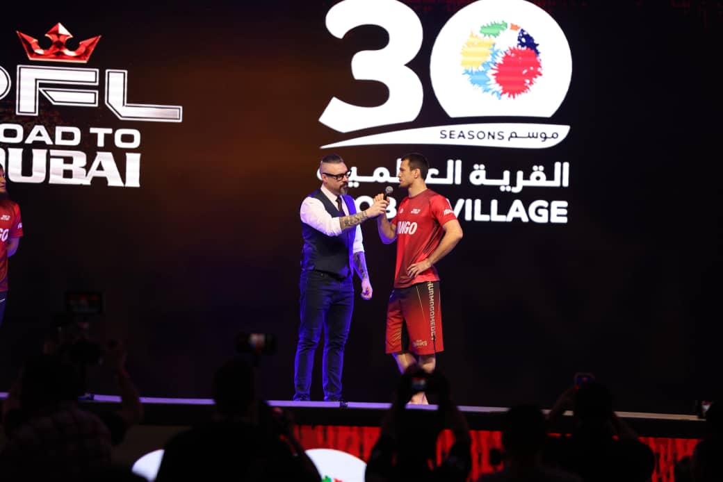 وأقيمت الفعالية على المسرح الرئيسي في القرية العالمية، حيث أتيحت للزوار فرصة متابعة جانب من استعدادات المقاتلين عن قرب، والتعرّف على أجواء ما قبل النزال، إلى جانب التقاط الصور التذكارية، في تجربة تفاعلية عكست الزخم المصاحب للبطولة.