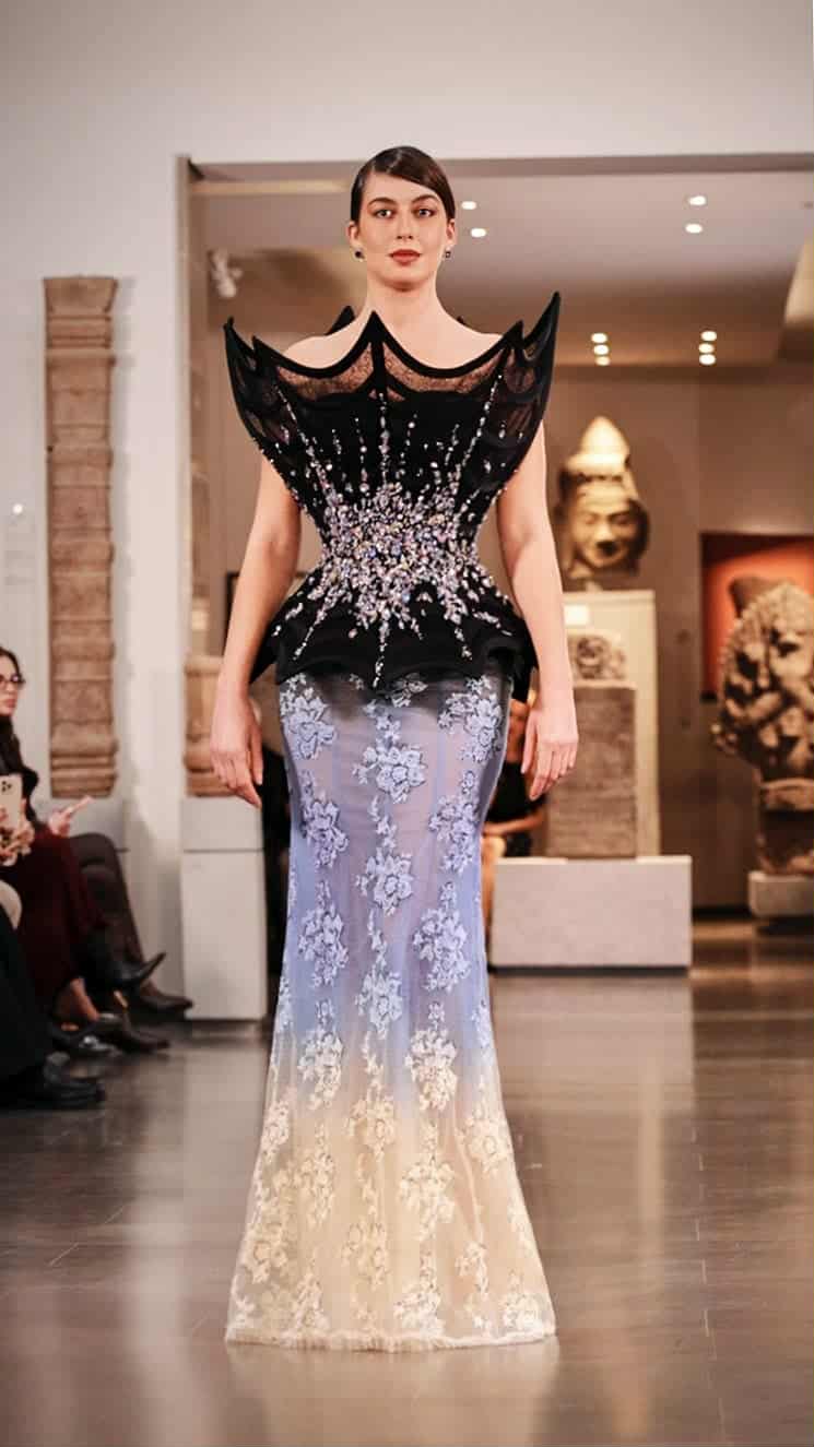 واحتضن العرض Musée national des arts asiatiques – Guimet، أحد أعرق الصروح الثقافية في فرنسا والمتخصص بالفنون والحضارات الآسيوية، ما منح المجموعة بعدًا ثقافيًا وإنسانيًا عميقًا، حيث تحوّلت المنصة إلى مسرح سردي يبدأ من العتمة، ويتدرج بصريًا نحو النور، في محاكاة رمزية لرحلة المرأة مع ذاتها وقوتها الداخلية.