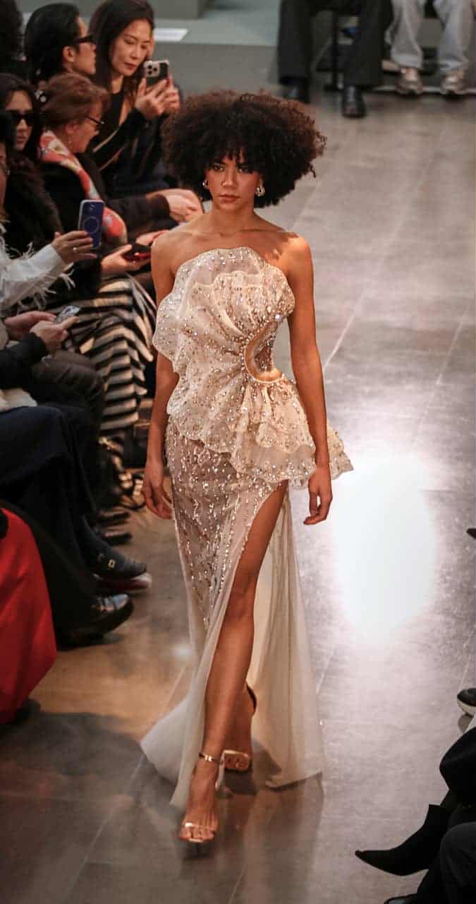 وقدّمت عجاج خلال العرض 27 فستانًا حملت توقيعها الخاص، في تجربة فنية مزجت بين أنوثة المشرق وجرأة الحاضر، وقدّمت رؤية بصرية تحتفي بالقوة الكامنة في المرأة، وبقدرتها على النهوض من الظلال إلى الضوء، دون أن تتخلى عن رهافتها أو حضورها الرومانسي.