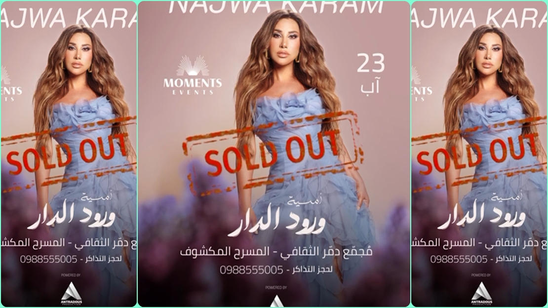 ستشهد أمسية "ورود الدار" لشمس الأغنية العربية الفنانة نجوى كرم تدفق جماهيري كبير، بعدما أعلنت الشركة المنظمة "مومنتس افانتس" عن إكتمال عدد الحضور وتحقيقSOLD OUT للحفل الذي سيعقد في الجمهورية السورية يوم مساء يوم 23 آب/أغسطس 2024 المقبل بمدينة دمشق في مجمّع دمّر الثقافي - المسرح المكشوف.