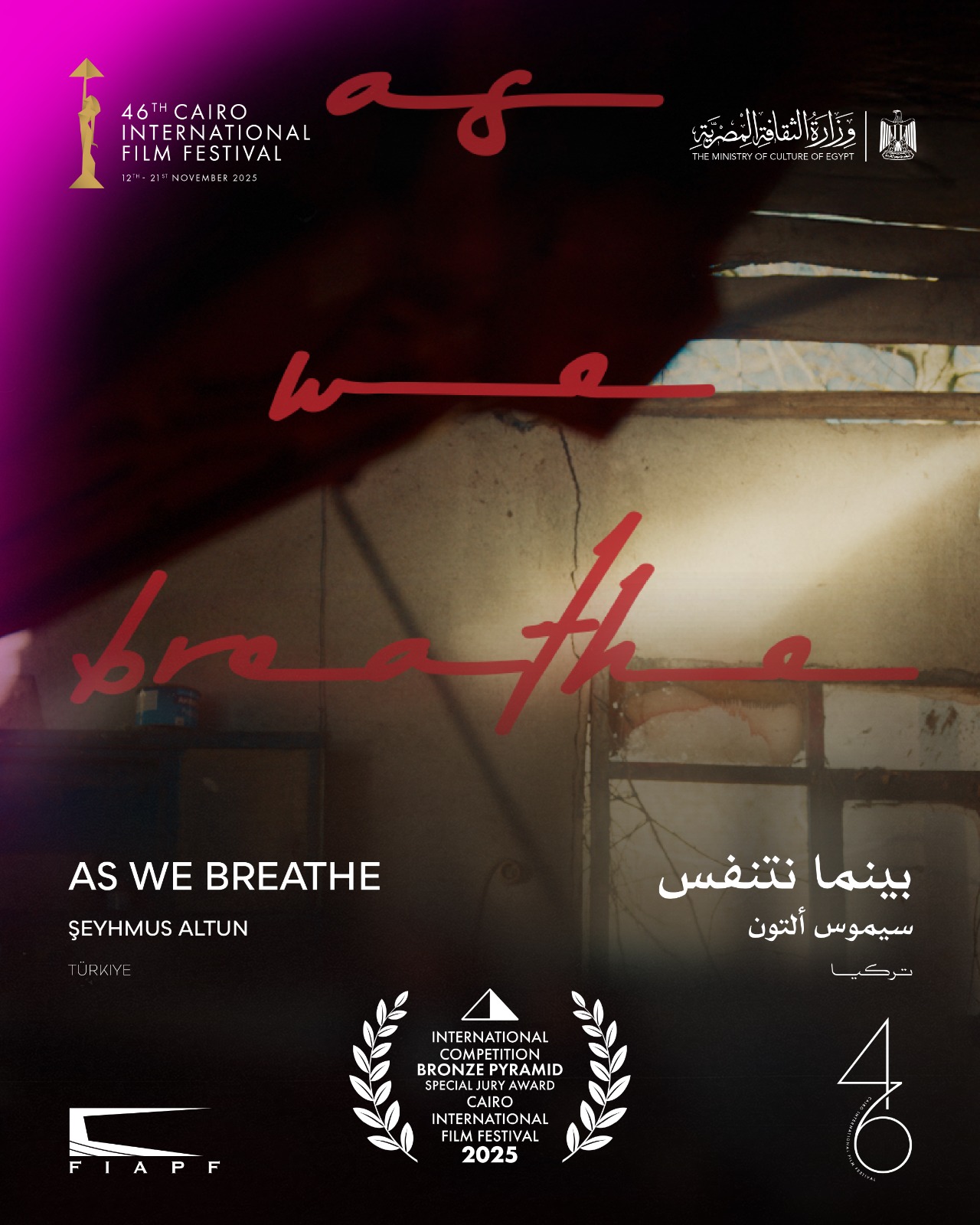 -جائزة الهرم البرونزي مُنحت لفيلم "بينما نتفس" للمخرج سيموس ألتون
