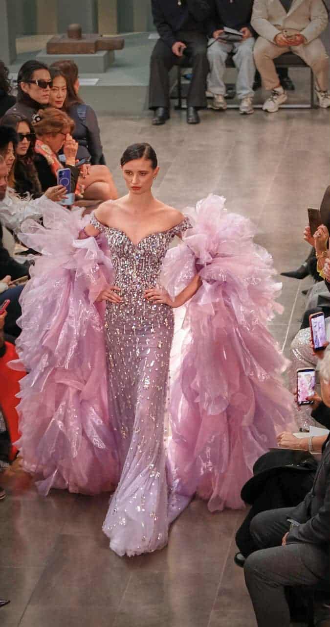 واحتضن العرض Musée national des arts asiatiques – Guimet، أحد أعرق الصروح الثقافية في فرنسا والمتخصص بالفنون والحضارات الآسيوية، ما منح المجموعة بعدًا ثقافيًا وإنسانيًا عميقًا، حيث تحوّلت المنصة إلى مسرح سردي يبدأ من العتمة، ويتدرج بصريًا نحو النور، في محاكاة رمزية لرحلة المرأة مع ذاتها وقوتها الداخلية.